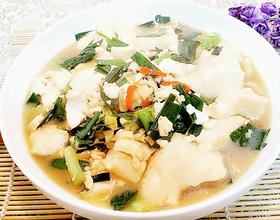 放入豆腐用锅铲轻轻划几刀,变成小块状