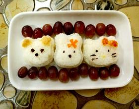 最后在饭团周围摆上提子装饰就行了,这样美美的饭团就做好了。