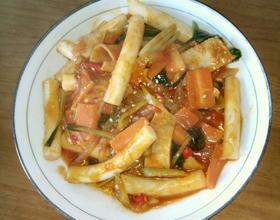 鱼饼要最后放入,这样有嚼劲点。收汁时要不停翻炒,不然容易粘锅。