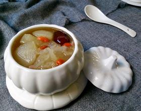 银耳要提前用水泡制4至5小时左右,在洗净晾干水,梨子去皮切成块,红枣洗净,枸杞洗净,冰糖适量,