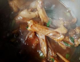 - 4. 在将煎好的鸭腿倒入小锅中。倒入汤汁