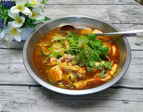 - 6. 先把豆腐、黄瓜入锅煮约一分钟。