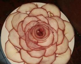 泡好以后,把梨切薄片。用平盘从外到内一层一层摆摆成花的形状。留ok啦