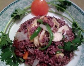 蒸好的米饭一盘,我放了香米一起蒸的,颜色比较漂亮