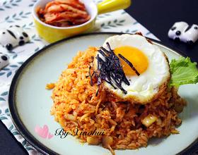然后倒入熟米饭炒匀,撒入适量盐调味即可盛盘(不要放太多,因为辣白菜已经有咸味了)