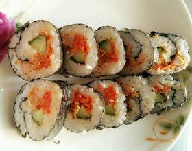 炒胡萝卜的时候不要放太多油,炒熟就行了,要不然胡萝卜有很大油味。肯定有很多朋友问我,为什么是炒不是焯。萱萱亲自品尝,炒的胡萝卜做寿司特别香哦