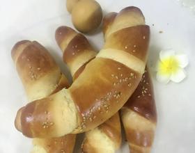 - 1. 先将高筋面粉和所有的东西一起揉。除了白芝麻。