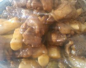 放盐和老抽酱油,鸡炒五六分熟,放入少许水,把山药放入,