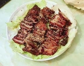 - 4. 好了,腌好的肉拿出来挑干净姜蒜捞出备用