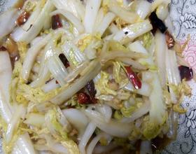 放入娃娃菜翻炒,倒入适量米醋炒至八成熟,放少许盐 蚝油翻炒拌匀