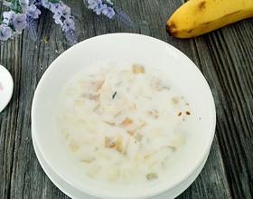 牛奶内放入红糖,香蕉丁,倒入碗中即可。