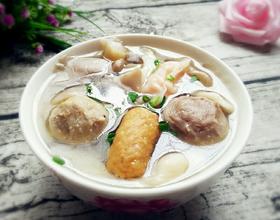 肉丸本来比较鲜,不需放鸡精;平菇放锅中水再次开后不要急着出锅,再多煮一分钟,菌类的一定要煮熟