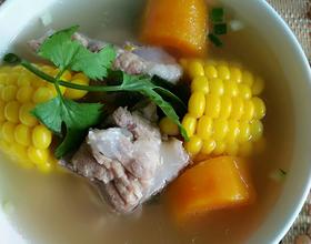 将玉米,胡萝卜,焯好的骨头,姜片一起放入电压力锅内,滴几滴白醋,加入水,按煲汤键就可以做别的事了。