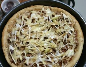 自制的饼胚用叉子扎,底盘刷上油,150度5分钟预热烤箱,放烤箱烤8分钟