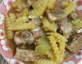 排骨斩小块,加入姜,葱,盐,生抽,生粉腌制半个钟