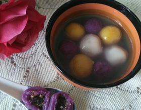 紫薯和红薯蒸熟,压成薯泥,加白糖