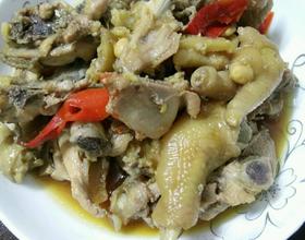 把鸡肉放入高压锅哩,也将把所以材料都放进去如图,先腌制十分钟左右,让鸡肉更入味,在煮的时候放一点点水,不要压太久,十一 二分钟就好了