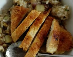 - 8. 平底锅放油,放入鸡胸小火煎,煎之两面金黄即可出锅