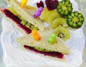 面包切三角,夹入水果