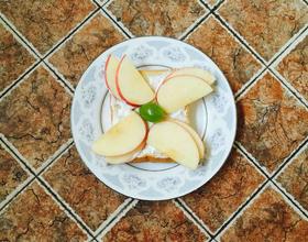 土司上抹用蜂蜜拌好的酸奶、码上苹果片