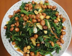 条件都放,盐,糖,醋,东古一品鲜酱油,辣椒油,香油,调好撒上花生豆