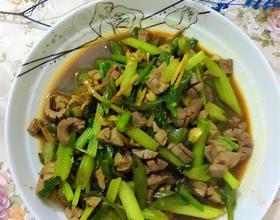 加入香芹杆,炒至将熟加入腰花大火快速翻炒