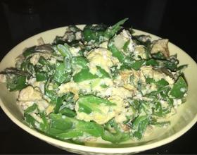 倒入搅拌好的鸡蛋液,等待成型,然后用锅铲小心翻炒