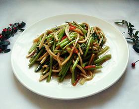 茼蒿茎部分切成·寸段,叶子留下,葱和辣椒切成细丝