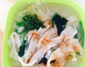 面粉加盐和适量水和成面团!水一点点加,面团不用担心软硬,软就加面,硬就可以加入点水。不需要一次就揉成光滑的面团,醒一会儿就好揉了锅里加一点煮水吧,水开后转小火,一边抻拉面条一边下面,这样的面一定现做现吃,如果你想吃跟劲道爽滑的口感,那有两个办法,一个是和面加蛋,另一个在此步骤抹油醒一会儿,再抻长入锅。抻拉面时不要一下就追求完美,慢点,边抻拉边捏。不要担心熟的不齐,这样的面熟的快。全部抻入锅里煮开再加蔬菜,再开就可以了!浑汤面就可以吃了,如果面条单独过凉水冲一下更筋道!