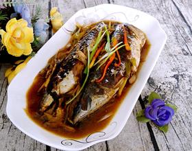 - 3. 热锅热油,放入鲅鱼两面煎黄,一面煎好再煎另一面。