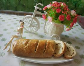 撒上芝麻,葡萄干,核桃仁等,后面留几公分不放东西好收口