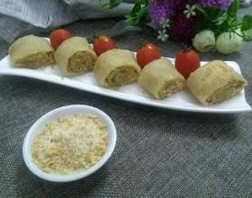卷好的糯米粉卷。切5厘米左右。
