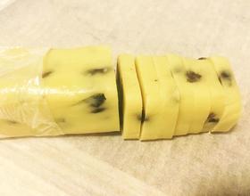 加入蔓越莓,不用切,直接放入,搅拌均匀,用保鲜膜包好,填充到模具里面,(蔓越莓饼干专用模具,没有模具直接在平的地方搞成方方正正的样子)放入冰箱冷藏一个小时定型。