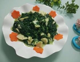 1.荠菜烫水时间不要太长,否则叶子会发黄,荠菜全部转色就可以出锅,出锅后直接用冷水冲凉,这样颜色碧绿,好看,2.炒时荠菜有点吸水,适当多放点水,3.荠菜,适宜偏淡,所以加盐得注意,别太咸了。4.冬笋,根据大小取量。
