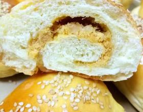 - 3. 取一个小剂子 搓成长条 用擀面杖擀成长椭圆形的面饼 抹上沙拉酱