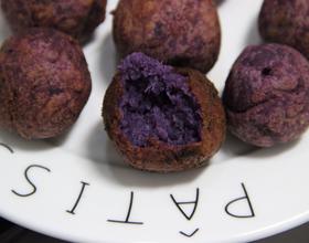 与一半面粉进行揉匀,纯紫薯不可以炸的,会散。