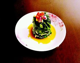 菠菜中加入适量香油、盐、生抽、醋、蒜末、姜末;