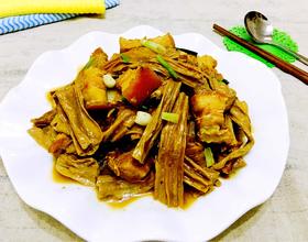 来张近照,腐竹吸收肉的油脂,软口适中,两者搭配,非常香郁可口。