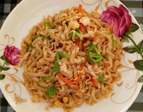 加入面条,加入海鲜酱油,少许食盐,少许蚝油,翻炒两分钟