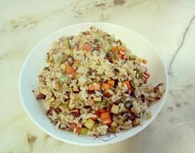 - 10. 待8成熟后,倒入米饭,翻炒。