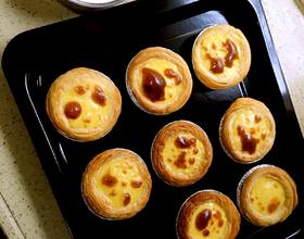 - 8. 烤箱预热后放入蛋挞,上下同时烤,200度,25分钟(我觉得250度也可以,自已把握吧,毕竟烤箱不同);