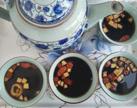 煮十分钟,在煮的过程中,把山楂和红枣粒加入杯中。