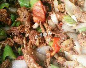 将其他配料爆炒,洋葱炒出香味,小米椒炒出辣味