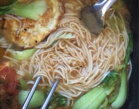 - 6. 开锅之后加入适量面条 想吃多少加多少 我比较能吃 感觉面条快熟了时候把鸡蛋放进去 闷一会
