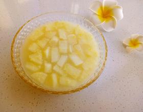 把苹果丁放入锅里,加适量清水,大火煮开。