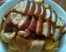 先煎肉皮,稍硬起泡为好,火不要太大了。煎肉皮要用牙签把肉皮扎孔,肉皮爱烂。(会溅油花,注意安全)肉片切得不要太厚,时间蒸的愈久,肉愈松软。