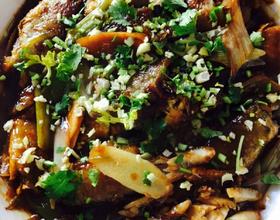 - 11. 起锅装盘,散上蒜末香菜碎装饰提味。