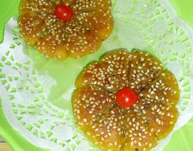 蒸好的南瓜用筷子搅成泥,加入白糖、糯米粉、吉士粉,和成团,有猪油的话,可以加一点。
