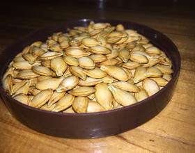 烤箱预热5分钟,再把南瓜子放进烤箱烤,烤箱调至150烤20分钟!大家要根据自家的烤箱,20分钟不够可以调120再烤5分钟