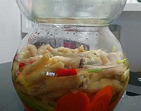 - 4. 把鸡爪入锅把花椒、桂皮、姜、八角一同入锅加适量水煮开去沫煮开大约5分钟